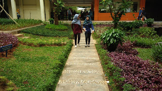 Sekarang ada pedestrian baru yang mengarah ke ruangan baru yang ada di Gedung D. Selain itu tanaman-tanaman baru juga ditanam. Tanamannya gak dominan warna hijau aja. Ada juga yang warnanya agak-agak blackcurrant. Persis kayak warna bayam merah. Mungkin karena masih dalam masa pertumbuhan jadinya area itu belum kelihatan indahnya. Kalau ngelihat dari lantai 4, kita bisa lihat kalau area itu dibagi berpetak. Gw penasaran sama klimaks dari area itu. Kira-kira bakal kayak gimana yah?